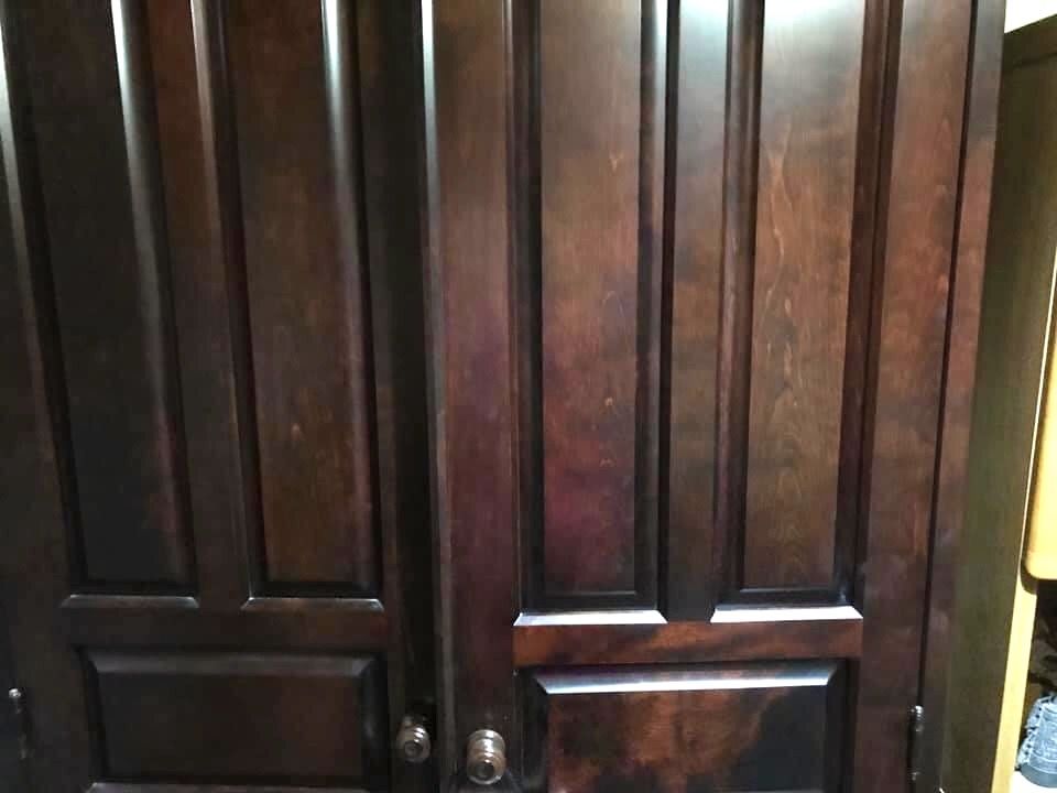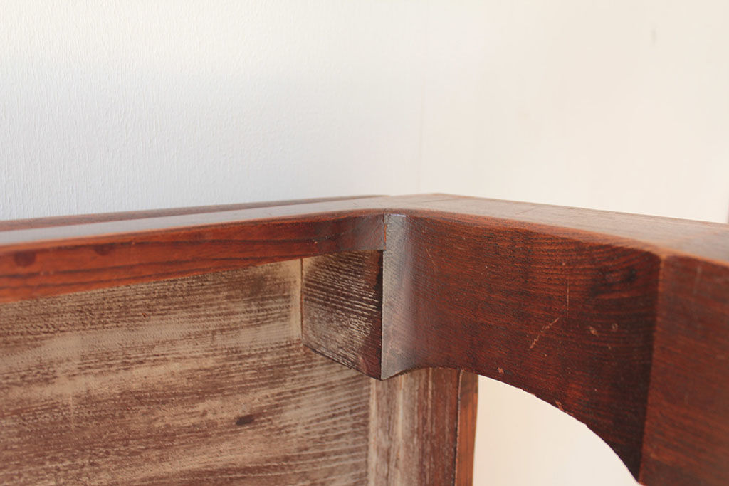 そして、松本民芸家具や北海道民芸家具がお好きと仰るお客様。天板塗装については、「この家具と雰囲気を揃えたいから、ちょっと赤みがかったダークな感じにしてほしい」とご希望いただきました。