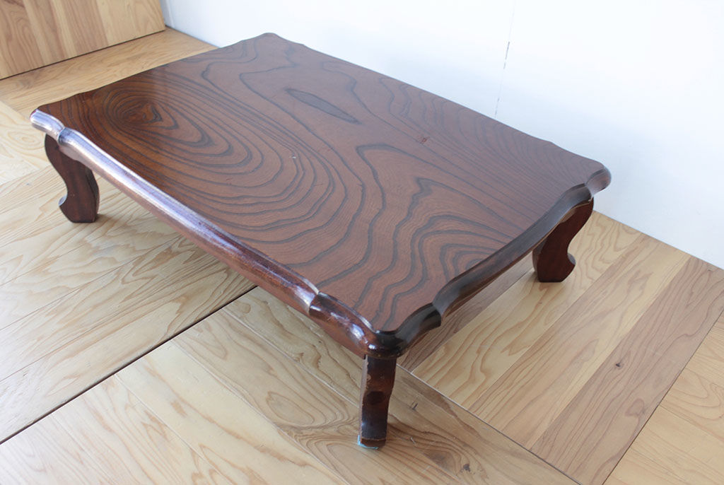 欅天板の流れるように美しい木目がいきいきと映える素敵なちゃぶ台となりました!