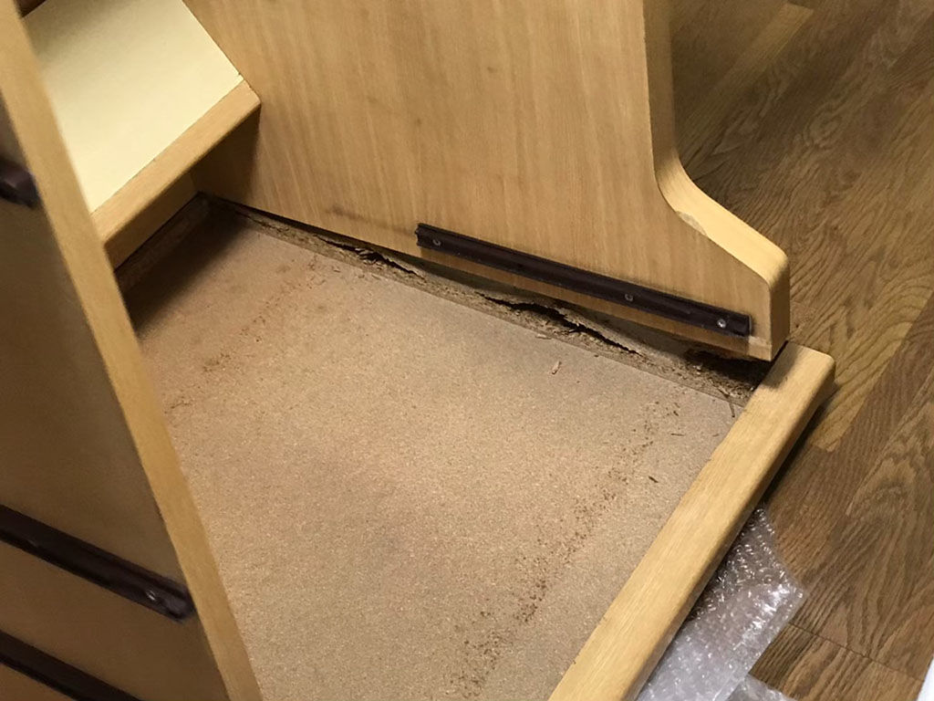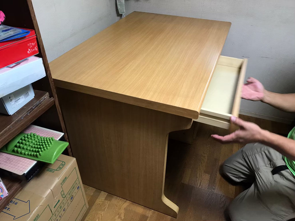 こちらの学習机は、お引越しの時に窓から吊り上げてお2階に搬入されたそうで、そのままでは階段から搬出することができません。