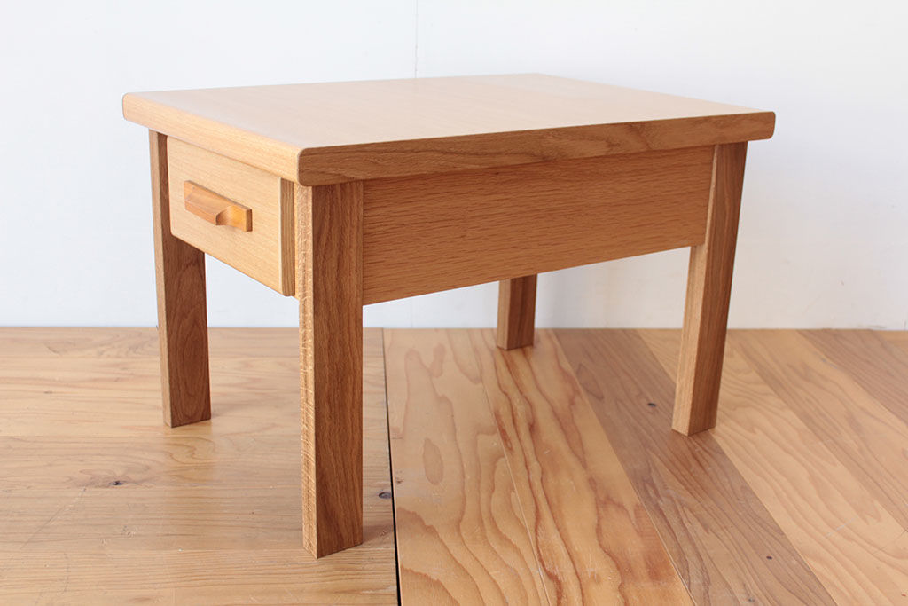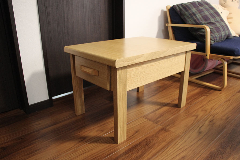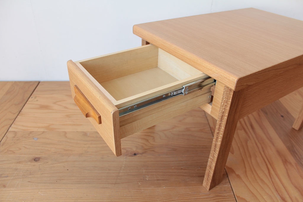 学習机の面影を残しつつ、サイズはコンパクトに、重さも軽く、でも収納力はバッチリなリビングテーブルとなりました。