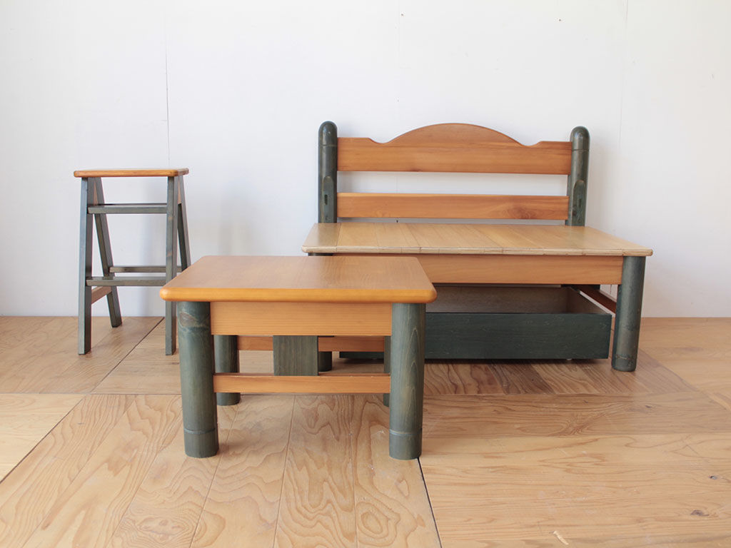 ルーツファクトリーでは、このように一つの家具から様々な部材の特性を生かして複数の家具へとリメイクすることも得意です。