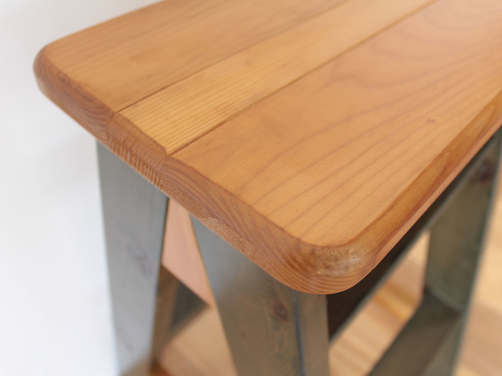 天板はベッドのフレームを接ぎ合せて作ったのですが、中央に細いラインが入ることでメリハリがつき何ともお洒落ですよね♪