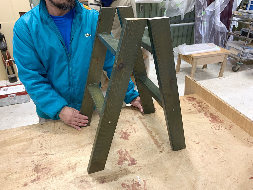 お打ち合わせに伺った時に家具作りたいおっさんがピンときて、「はしご、踏み台とか飾り棚とかにしたら可愛いですね」とお客様にお話ししたところ「そんなことができるんですか!?ぜひお願いします!」と言っていただきリメイクさせていただくことになりました。