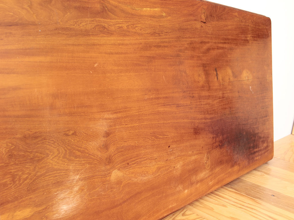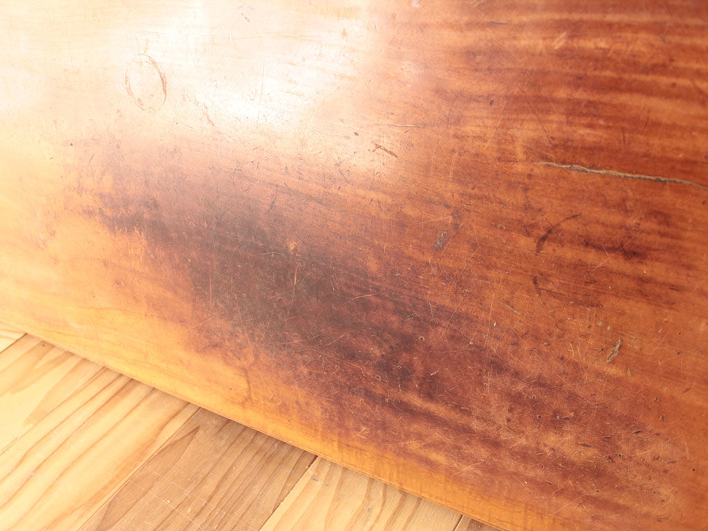 写真は分解後の天板のみとなっていますが、元は幕板に立派な彫刻が施された猫脚のダイニングテーブルでした。