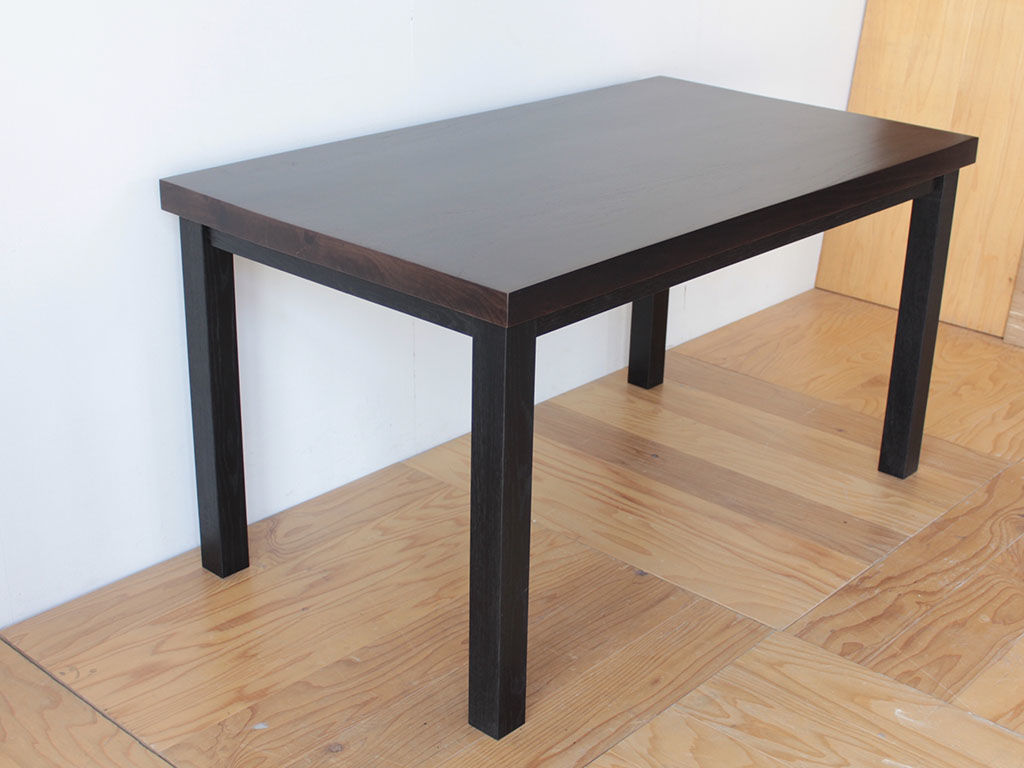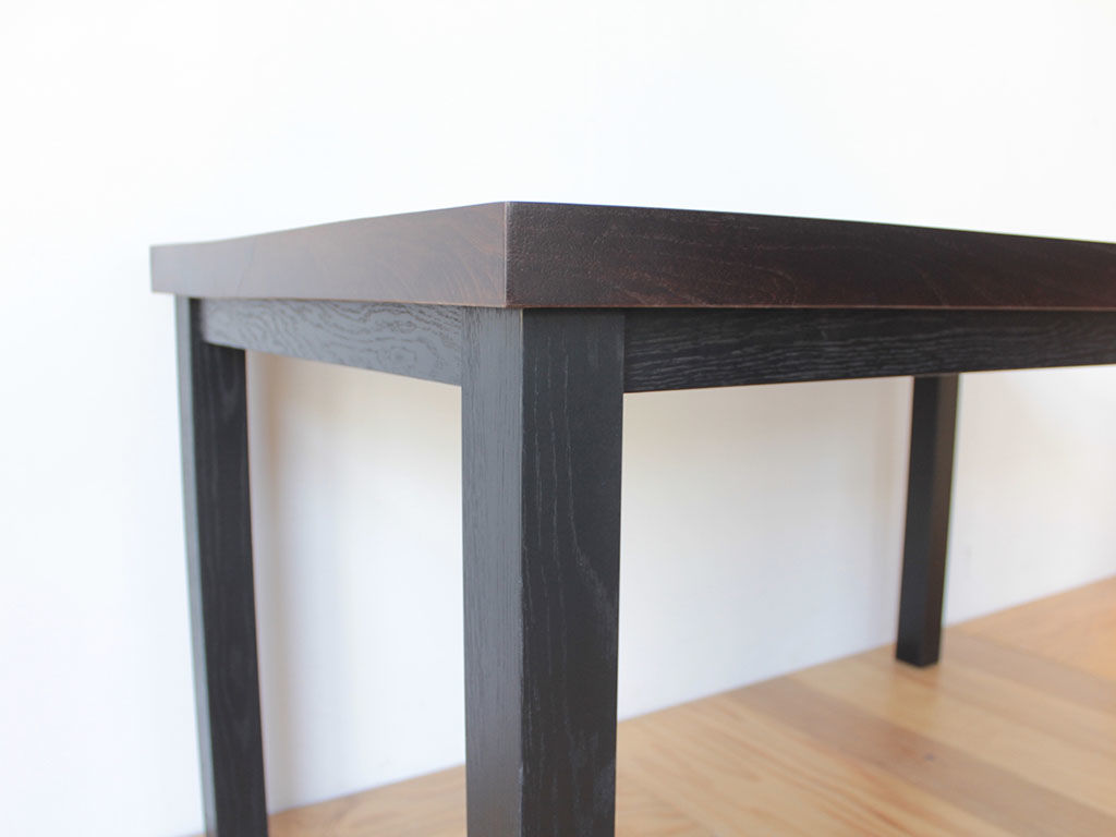 天板のサイズを少し縮め、塗装もお客様のご希望でウォールナット色に変更、脚はオーク材で新規製作しました。
