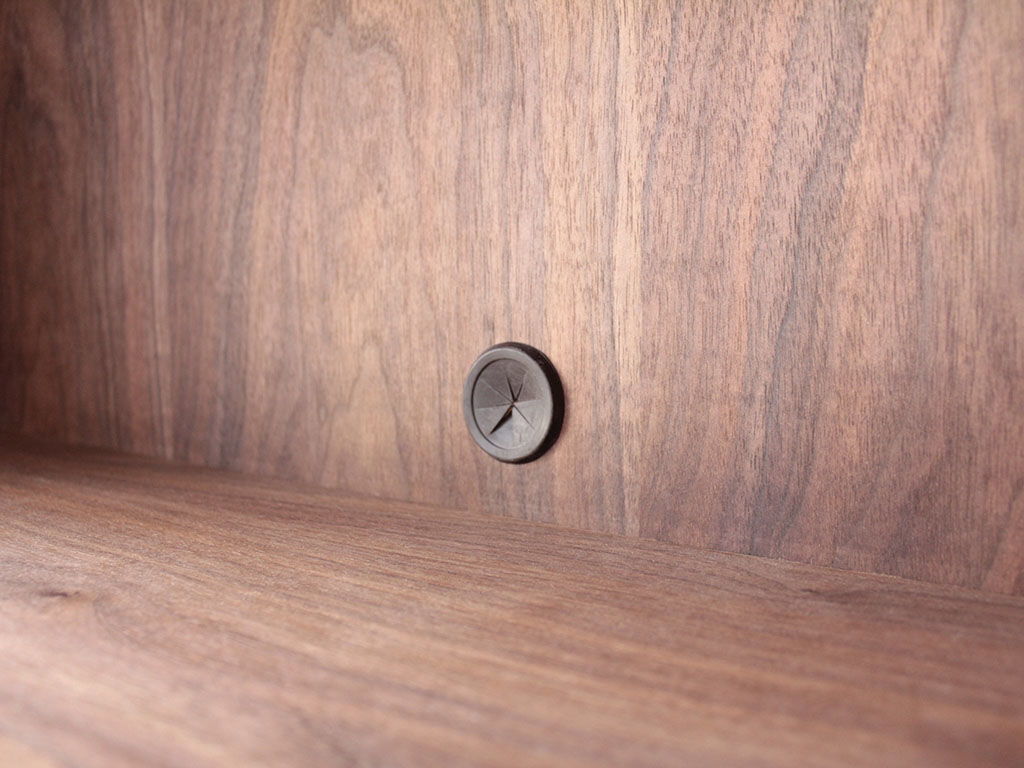 ちなみに、上部の棚部分にはテレビを置きたいとお客様からご希望いただき、背面には配線穴を取り付けています。