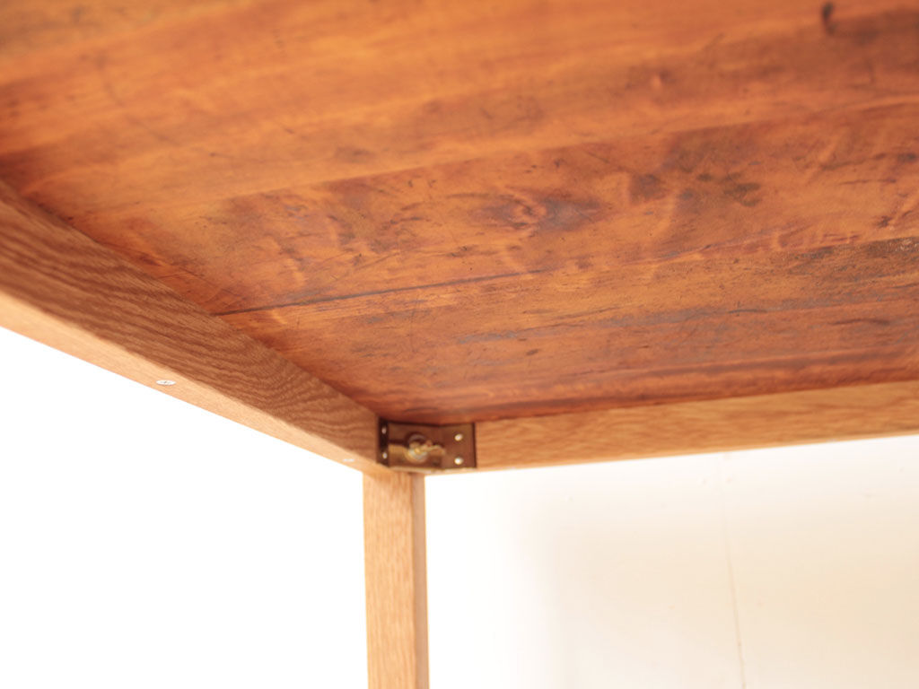 長年使われていたもので反りが出ていたり傷もたくさんついているから綺麗にしたいということ、大きさを一回り小さくしてテーブルとして使いやすくしたいということをご希望いただきました。