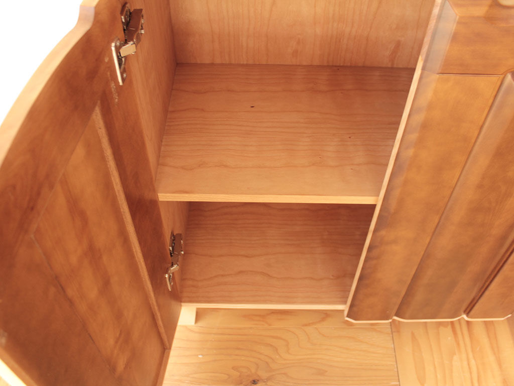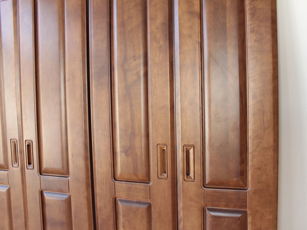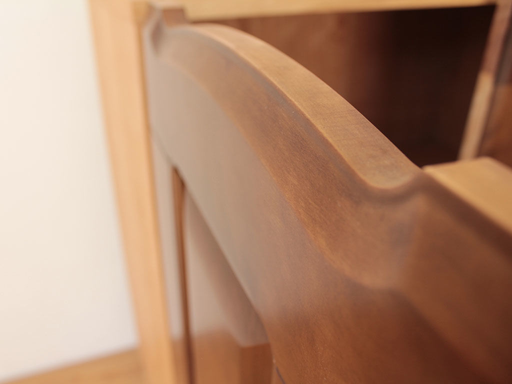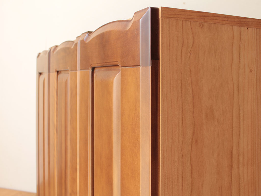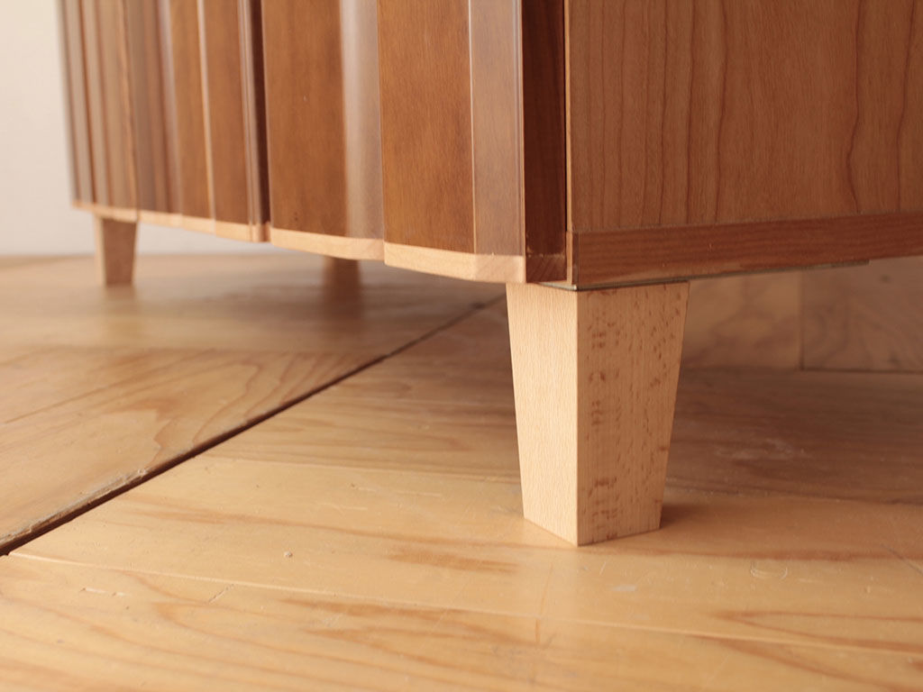 丈夫なサクラ材の扉を丁寧に加工し、キャビネットを支える大事な部材となりました。
