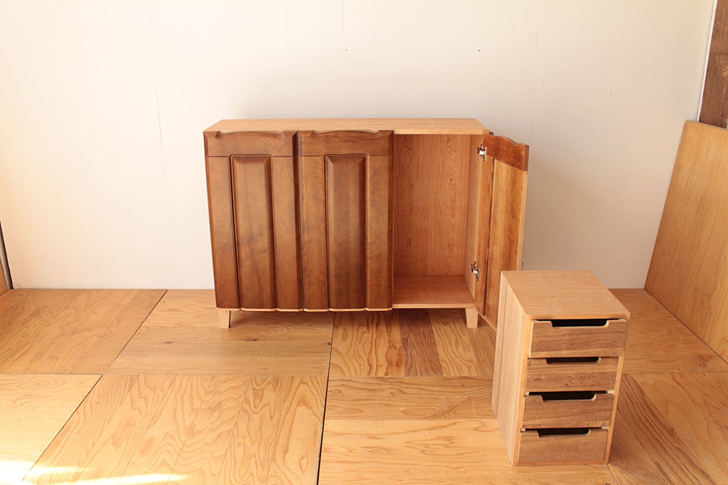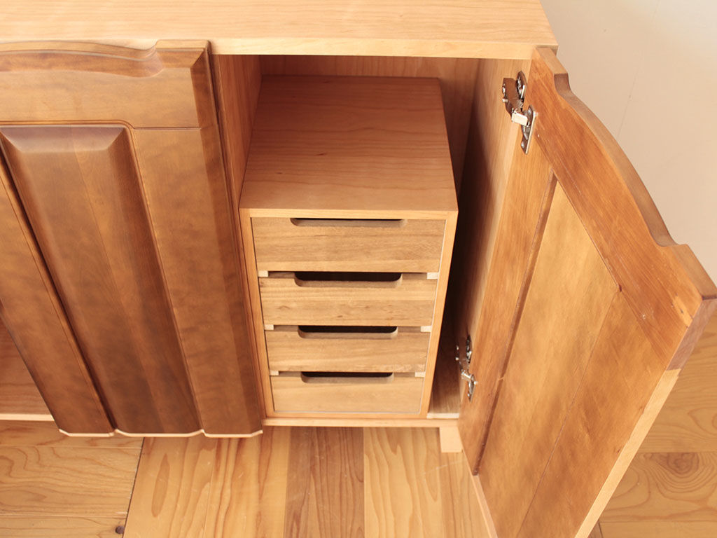 そして、婚礼タンスの内部についていた小引き出しは、奥行きを縮めてキャビネット内に設置できるようにしました。
