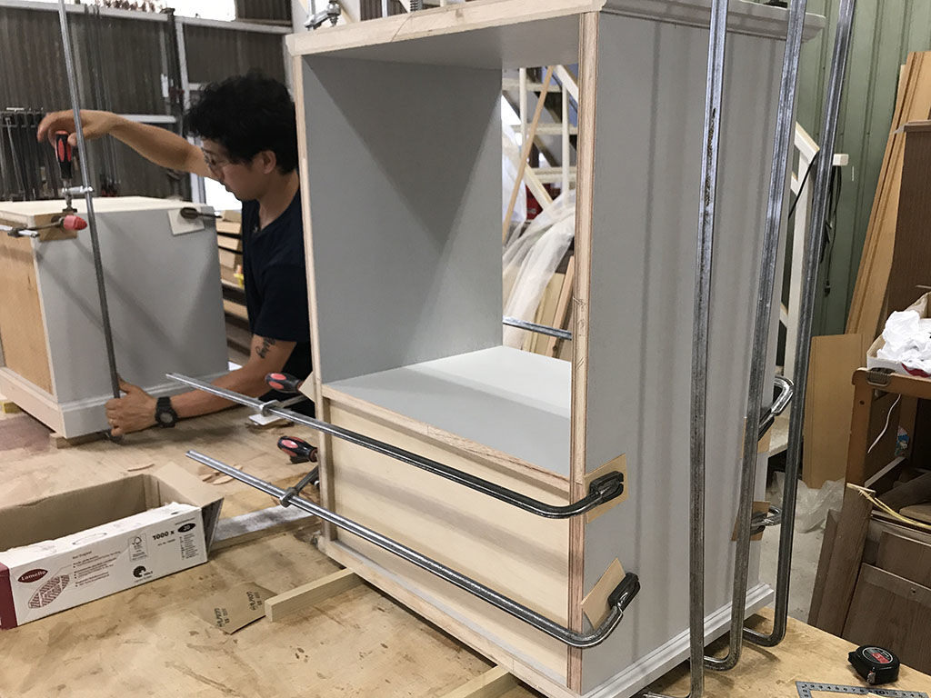 う〜ん、しかしこの2杯の小引き出しを使用してどんなテレビ台が生まれるのか想像がつきません。