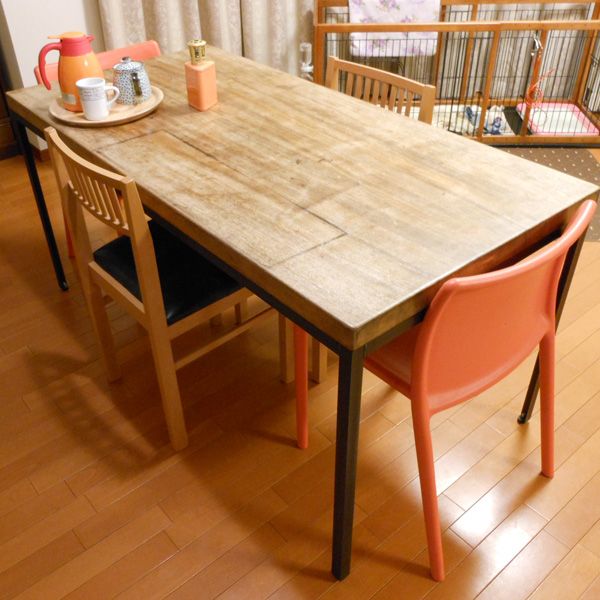 ご依頼いただいたのは、ダイニングテーブル。テーブルの脚が傷み、使えなくなってしまったからリメイクしたいとご依頼いただきました。木製の脚が傷んでしまっていたので新しく脚を製作、リメイクすることに。
