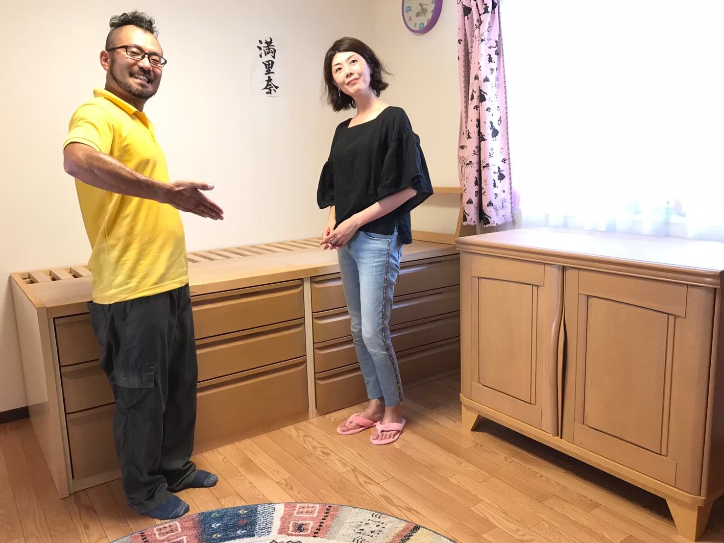 「大きすぎて新居で使うことができない」とご相談いただいていた婚礼タンスが、形をかえてお部屋に置けるようになるというだけでなく、すべて一緒の空間で使えるようになるなんて。
