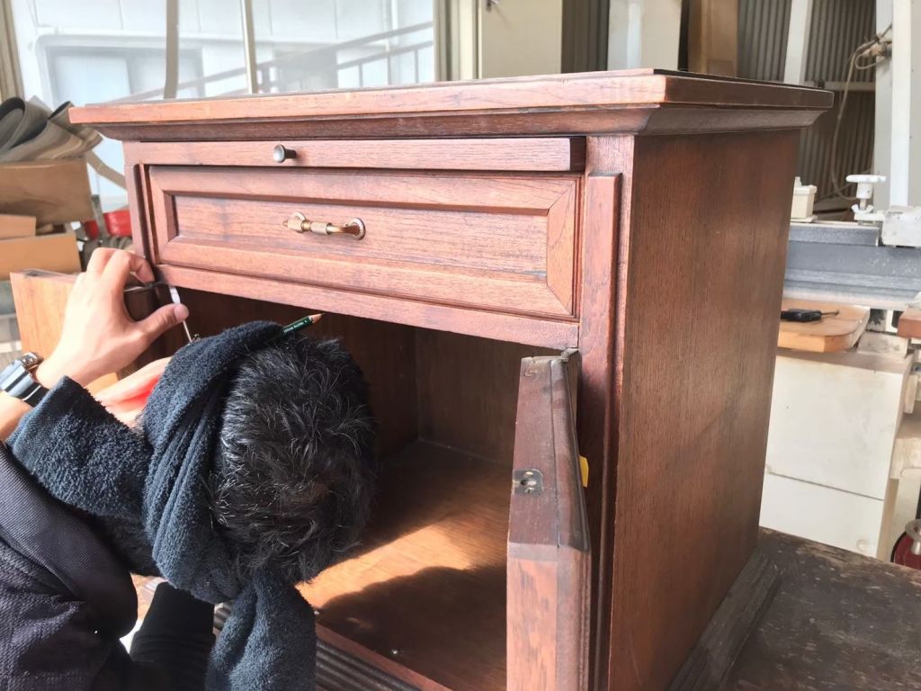 まずは、元の家具を傷つけないように丁寧に分解していきます。