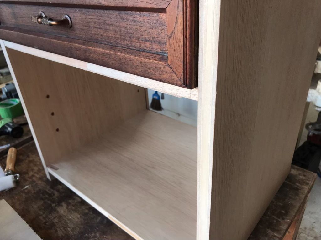 家具作りたいおっさんは家具を工房にお預かりして詳しく拝見した後、ナイトテーブルの外側の箱体を新しく製作することをご提案しました。