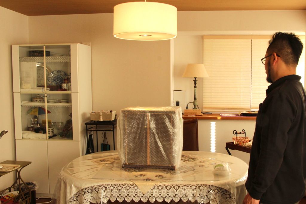 お客様に「こちらにお願いします」と言っていただき、いよいよ家具のお披露目です。