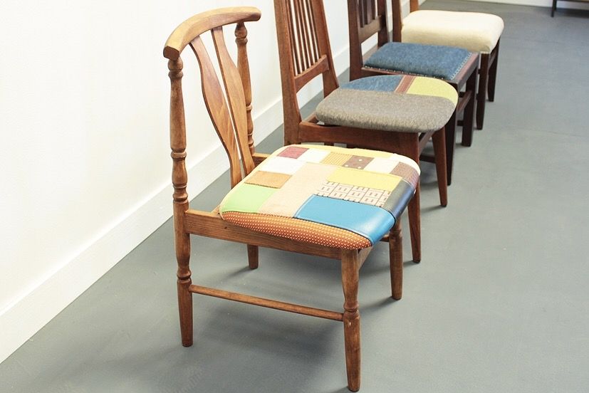 椅子って、座面を張り替えるととっても雰囲気が変わる!!ルーツファクトリーが今までリメイクしてきた椅子の写真を見てるとしみじみ思います。