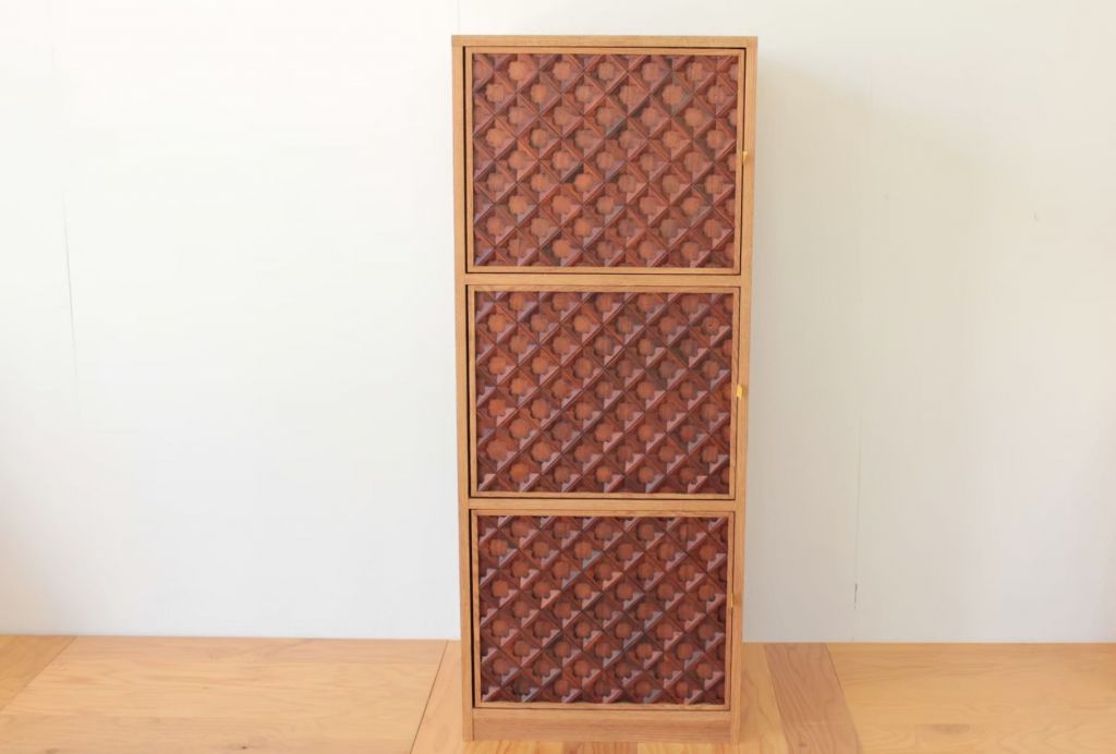 チークの婚礼タンス扉を開きの収納棚にリメイク!サイズも自由自在♪