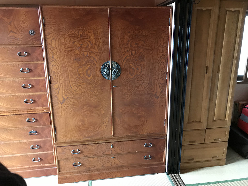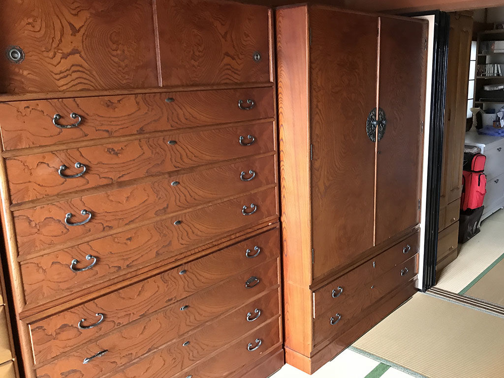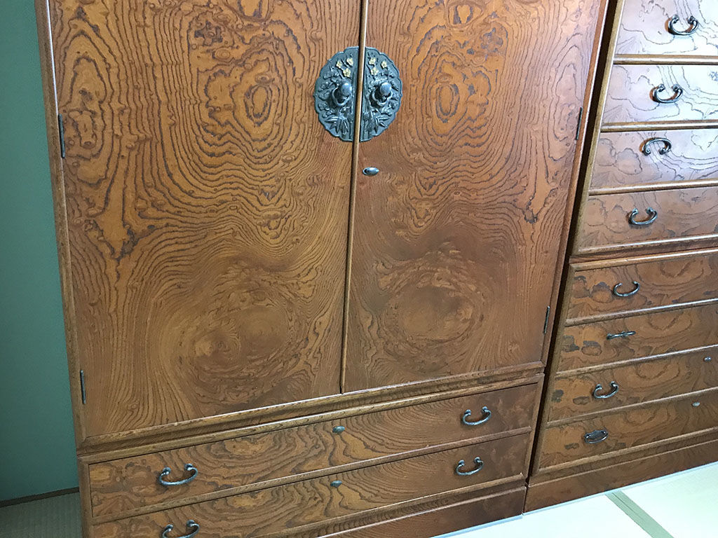 こちらはお問い合わせくださったお客様のご両親がご結婚された時の婚礼タンスだそうで、ご両親がお引越しされるというタイミングでご相談をいただきました。