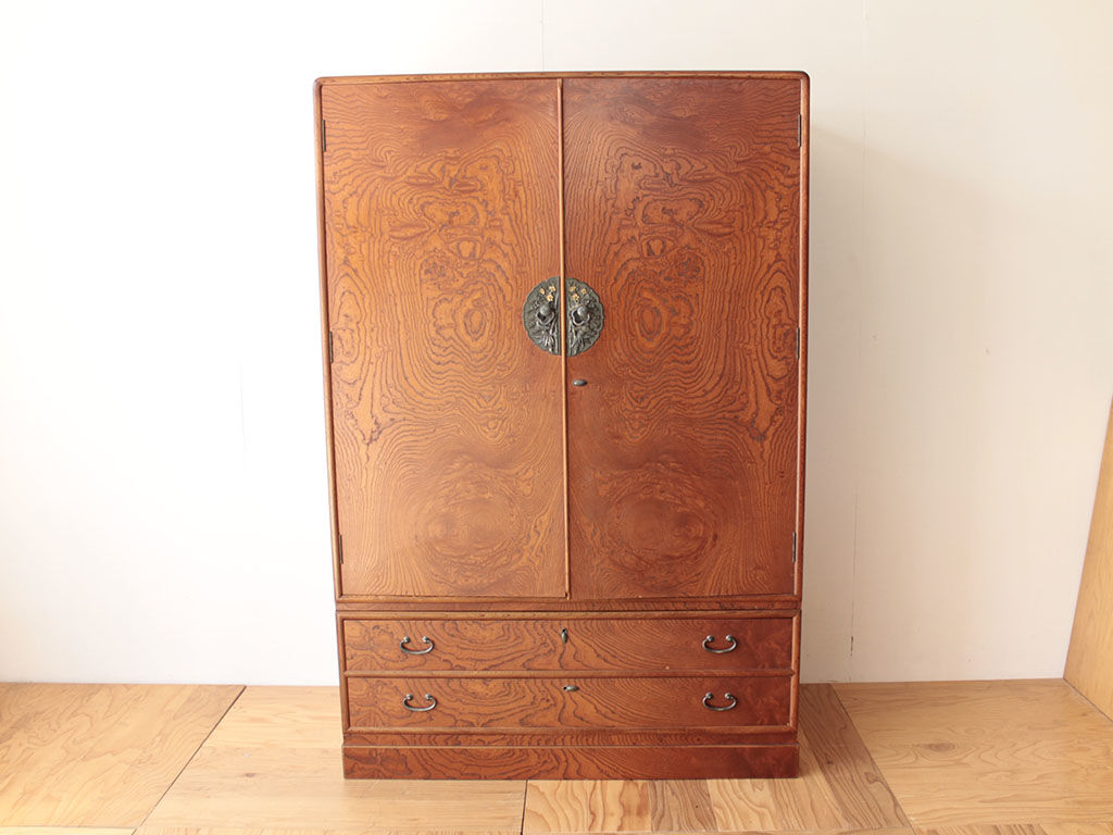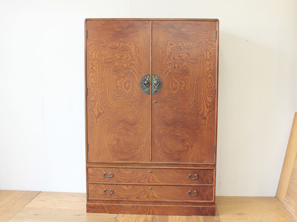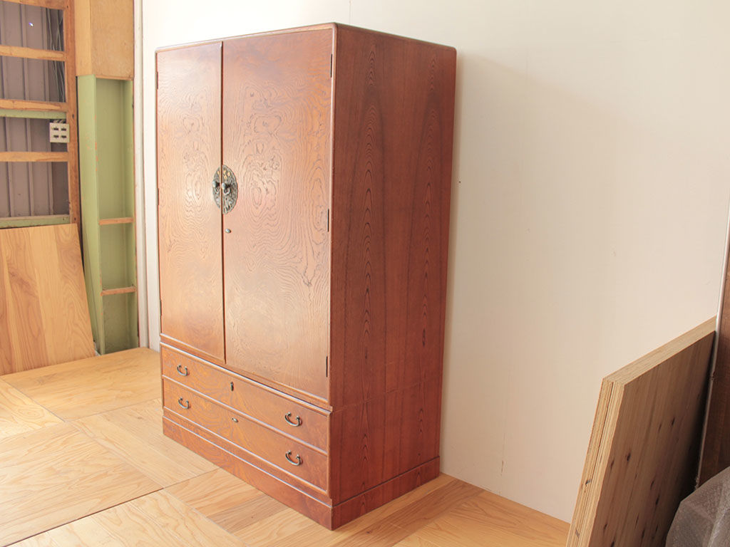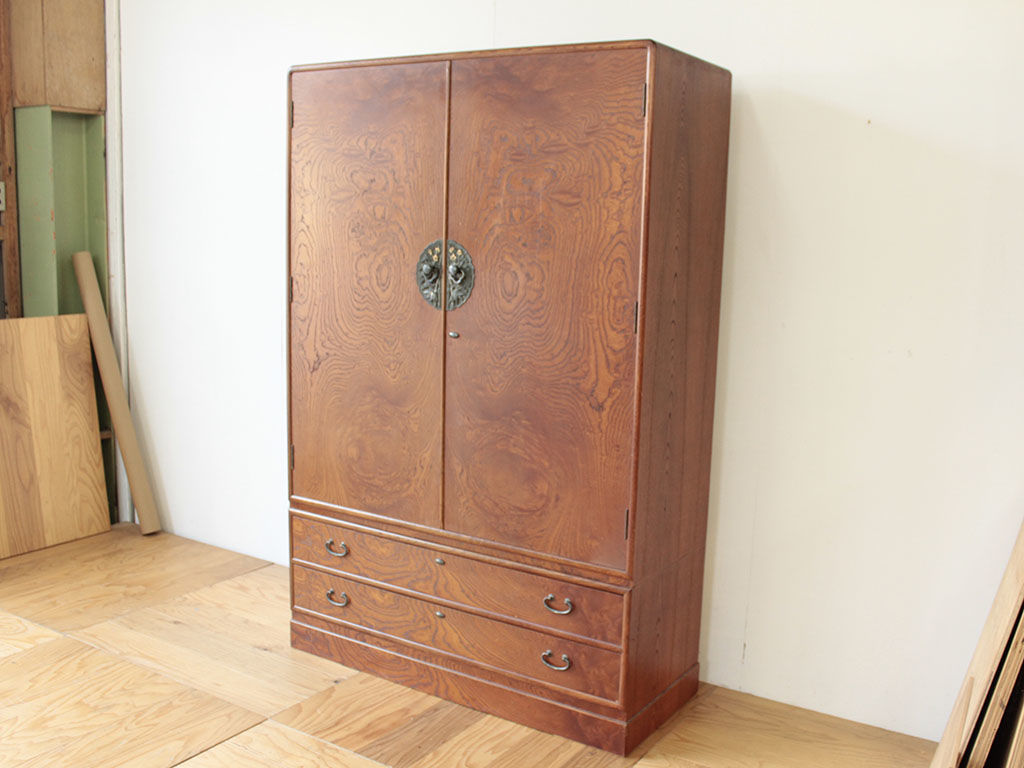 ダイナミックな杢目、鮮やかな褐色に思わず息をのむとても素敵な欅のタンスです。