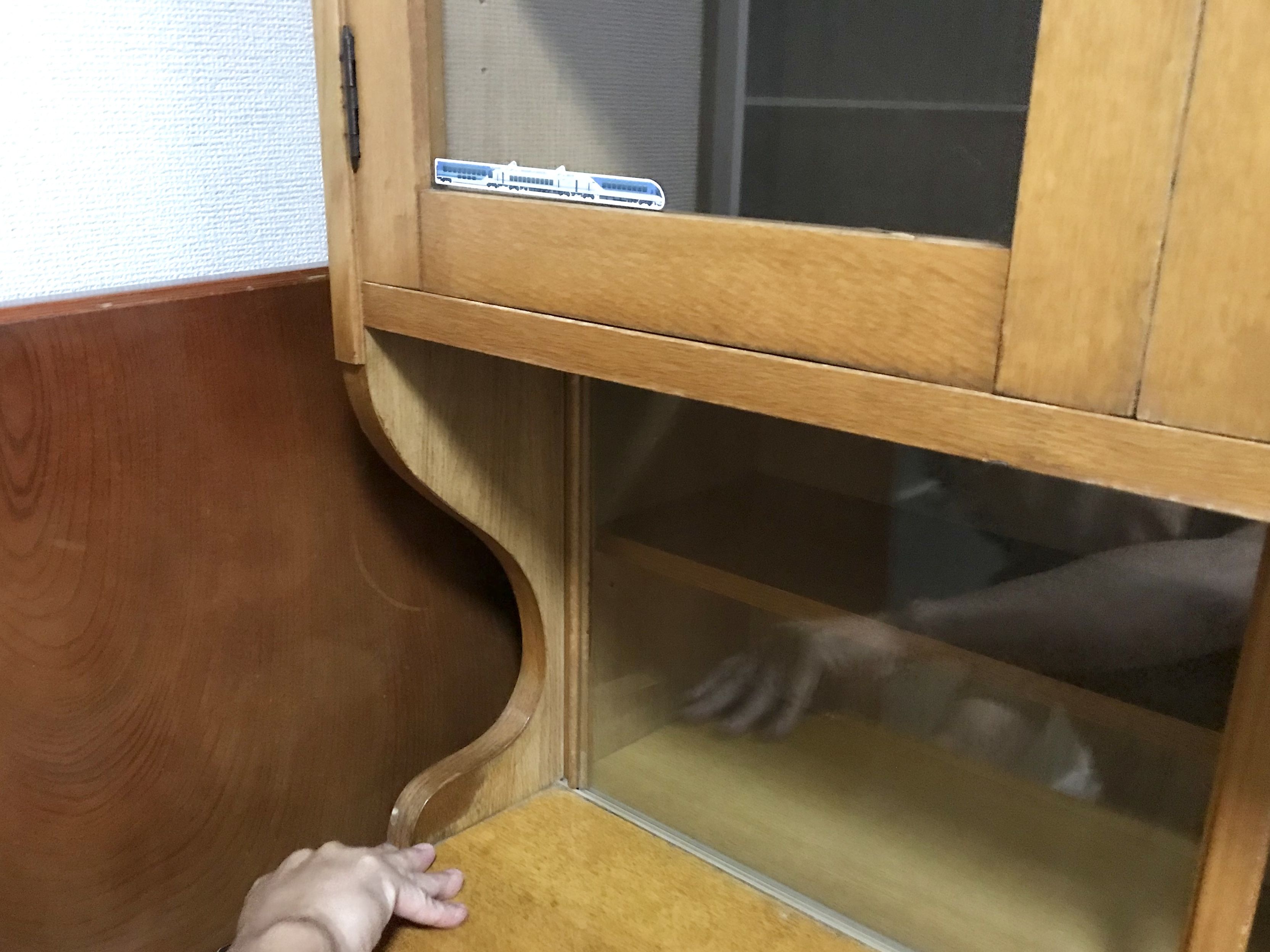 お話を伺っている最中、お客様が小さい時に貼ったというシールなどを発見して、お客様とこの食器棚とのこれまでに勝手に思いを馳せてキュンとしちゃいました。