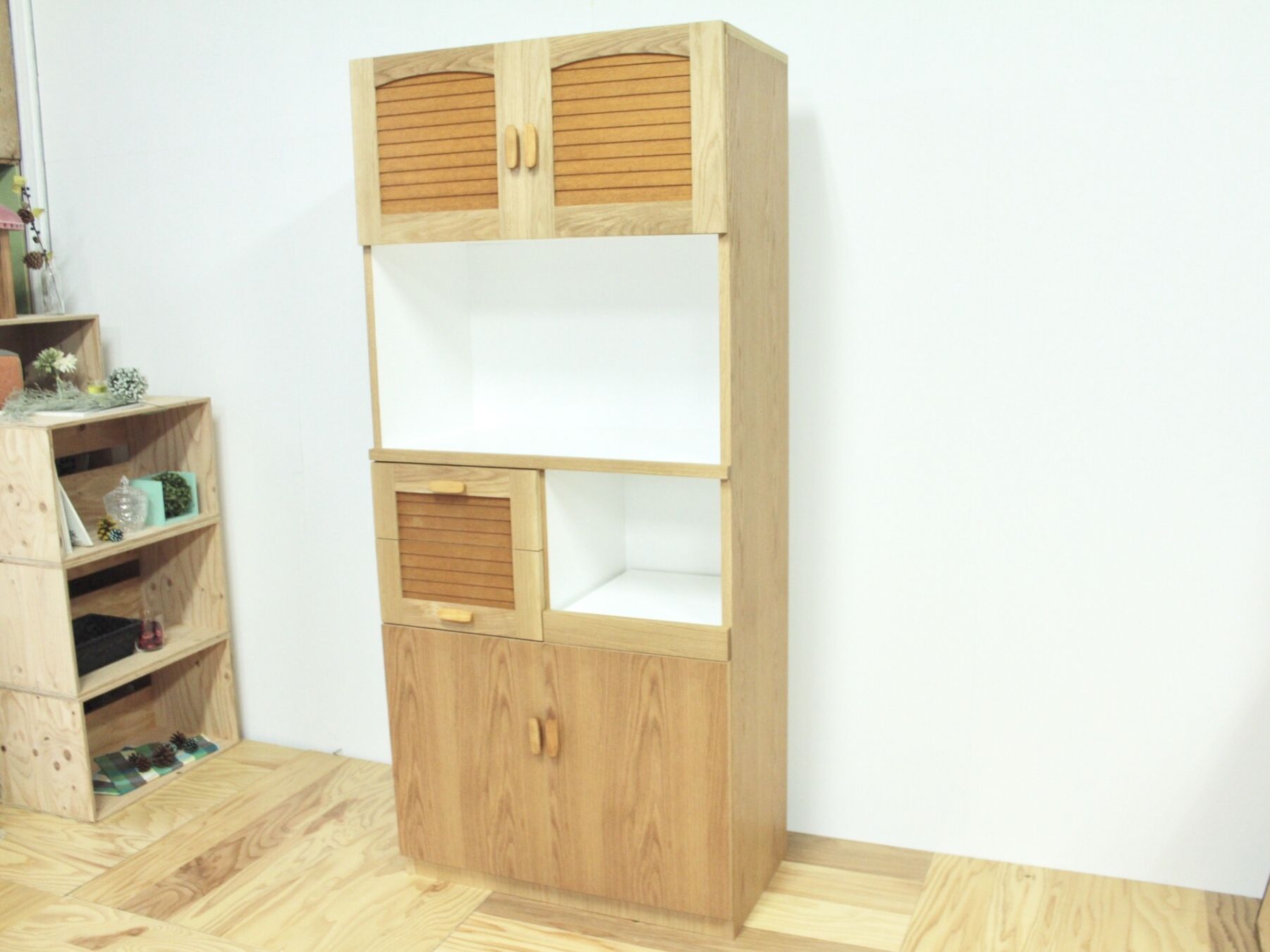 そして、元の食器棚のチャームポイントである扉を活かして、お客様の思い出が詰まった家具の面影を残しつつ新生活で使いやすい形へとリメイクしました。