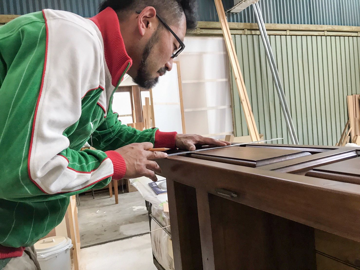 お客様の大切な一点モノの家具。緊張が走りますが、長年のリメイク経験から丁寧に仕上げていきます。