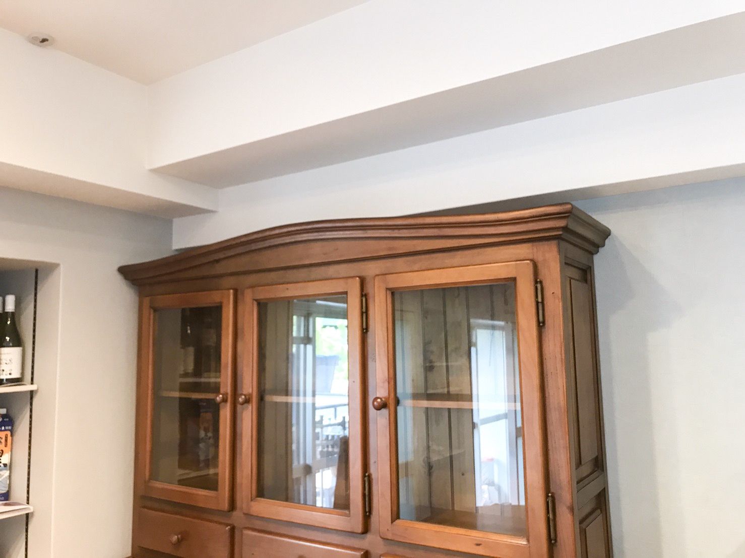 お電話で詳しくお話しを伺うと、食器棚をつけている壁面の天井に出っ張りがあり、食器棚のサイズ(高さ)が合わないため少し手前に出して置いていて、それが気になるからカットして背を低くしたいとのことでした。