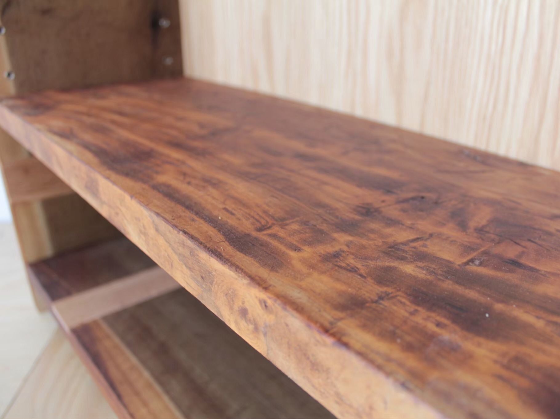 そこで、板を削ることはせず反りはそのままに、ズレが出ないよう板をカットし組み合わせなどを工夫しながら棚を組み上げていきました。
