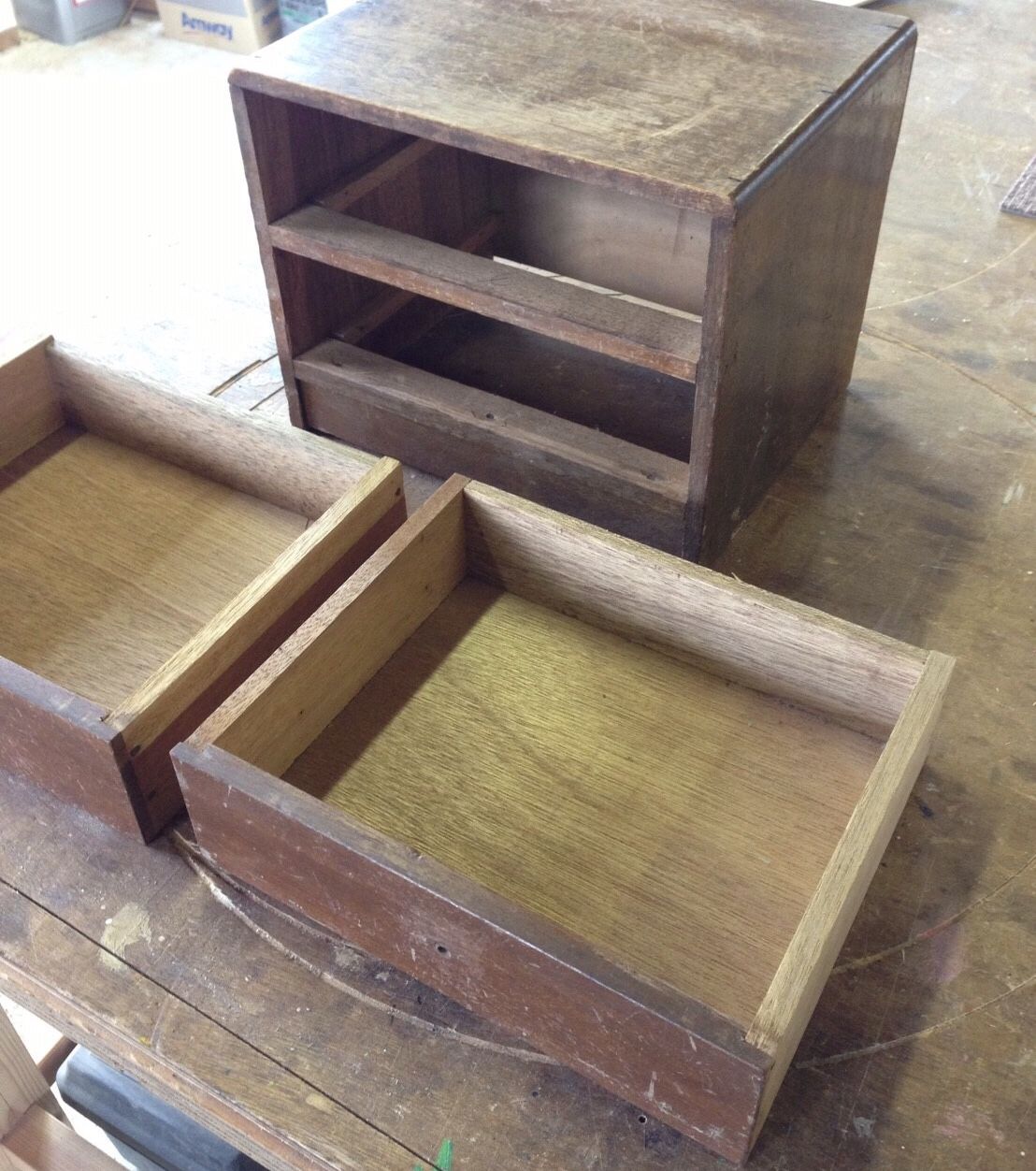 本体はサンディングのみで大丈夫でしたが、引き出しは材が朽ちかけているので、作り直す必要がありました。