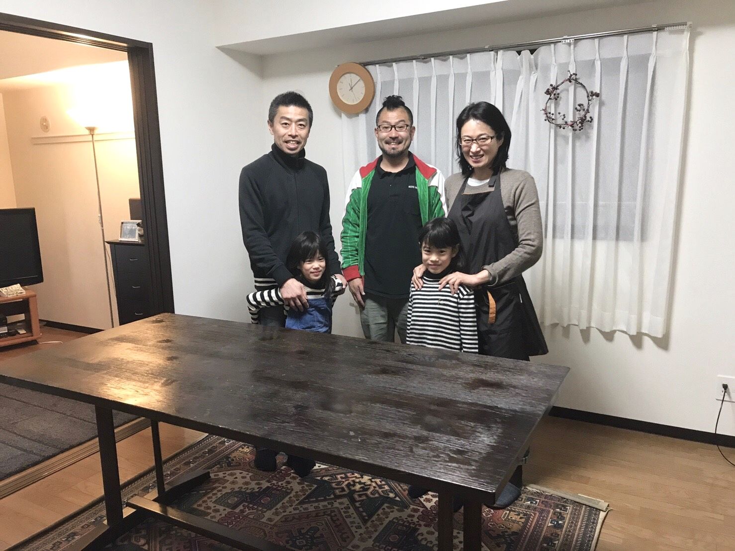 そんなこんなで完成したリメイクダイニングテーブルを、お客様のお宅に納品させていただきました。