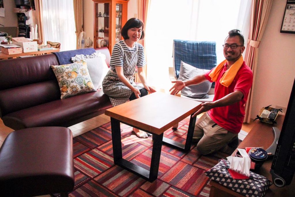 無垢一枚板のテーブルをコンパクトに!リビングテーブルにリメイク!