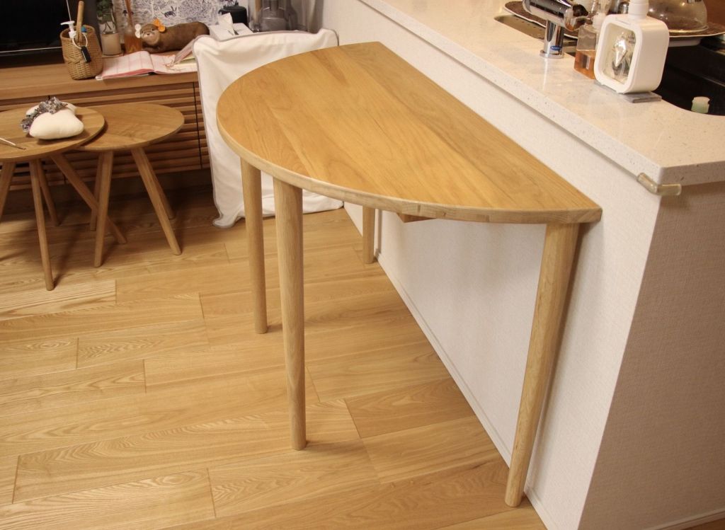 お子様も使いやすく♪長方形ローテーブルを半円テーブルにリメイク。