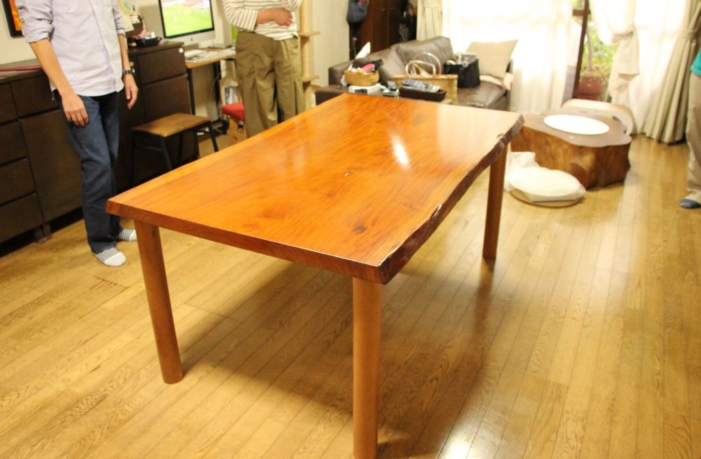 耳付き無垢一枚板の座卓を、雰囲気そのままに食卓テーブルにリメイク!