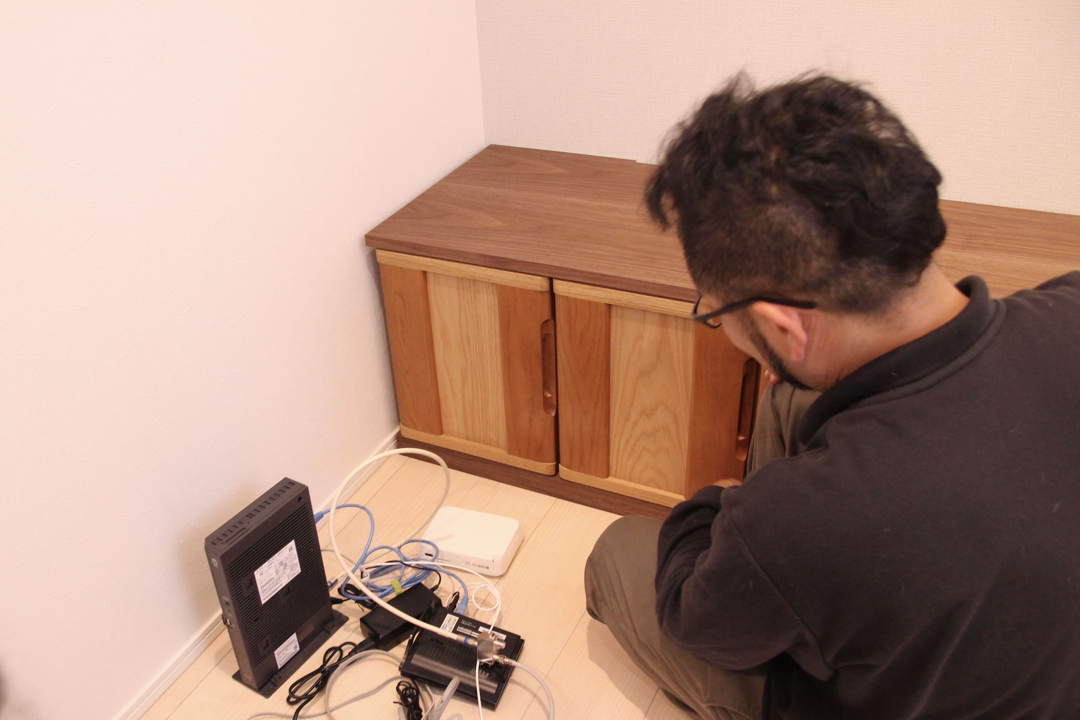 さて、こちらのテレビボードの仕様を詳しくご説明するために設置前に時間を戻して見ましょう・・・