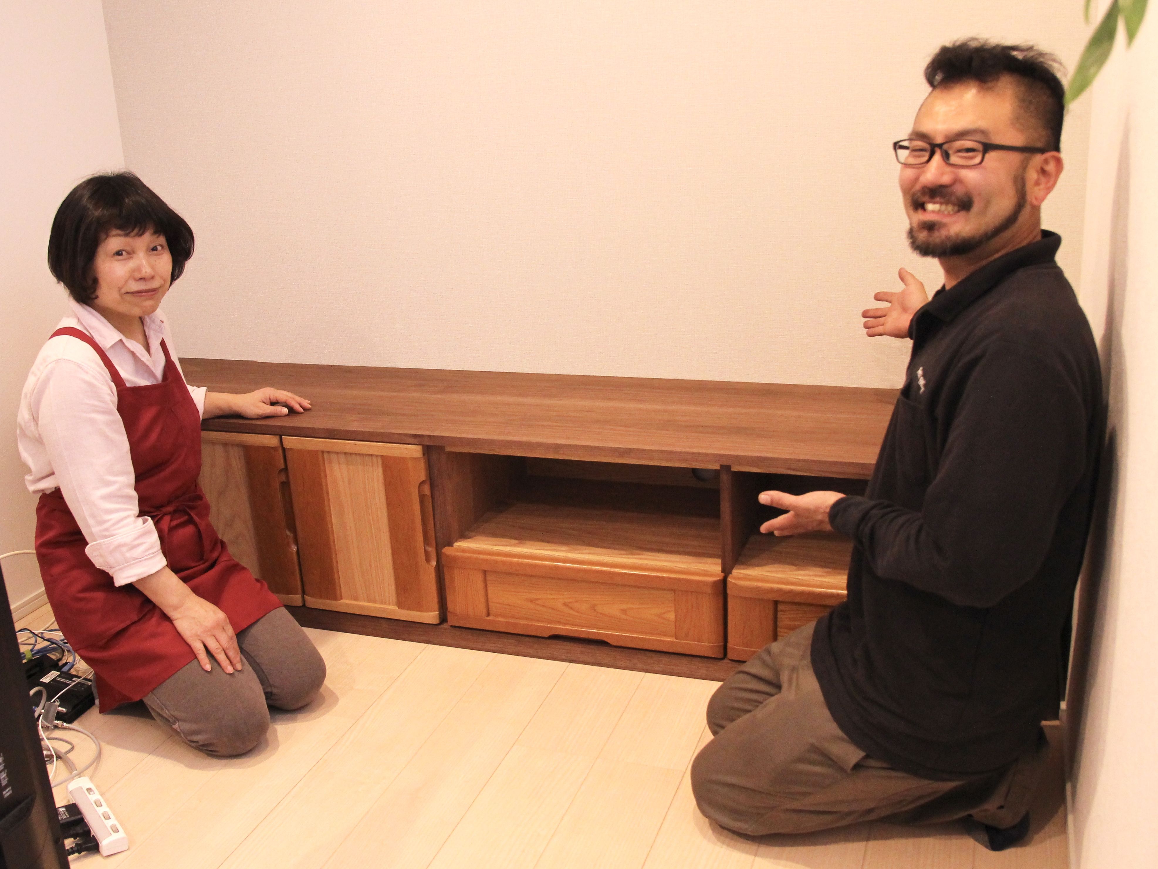 そうして丹精込めて製作させていただいたテレビボード、納品が完了するとお客様からとっても嬉しいお言葉をいただきました。