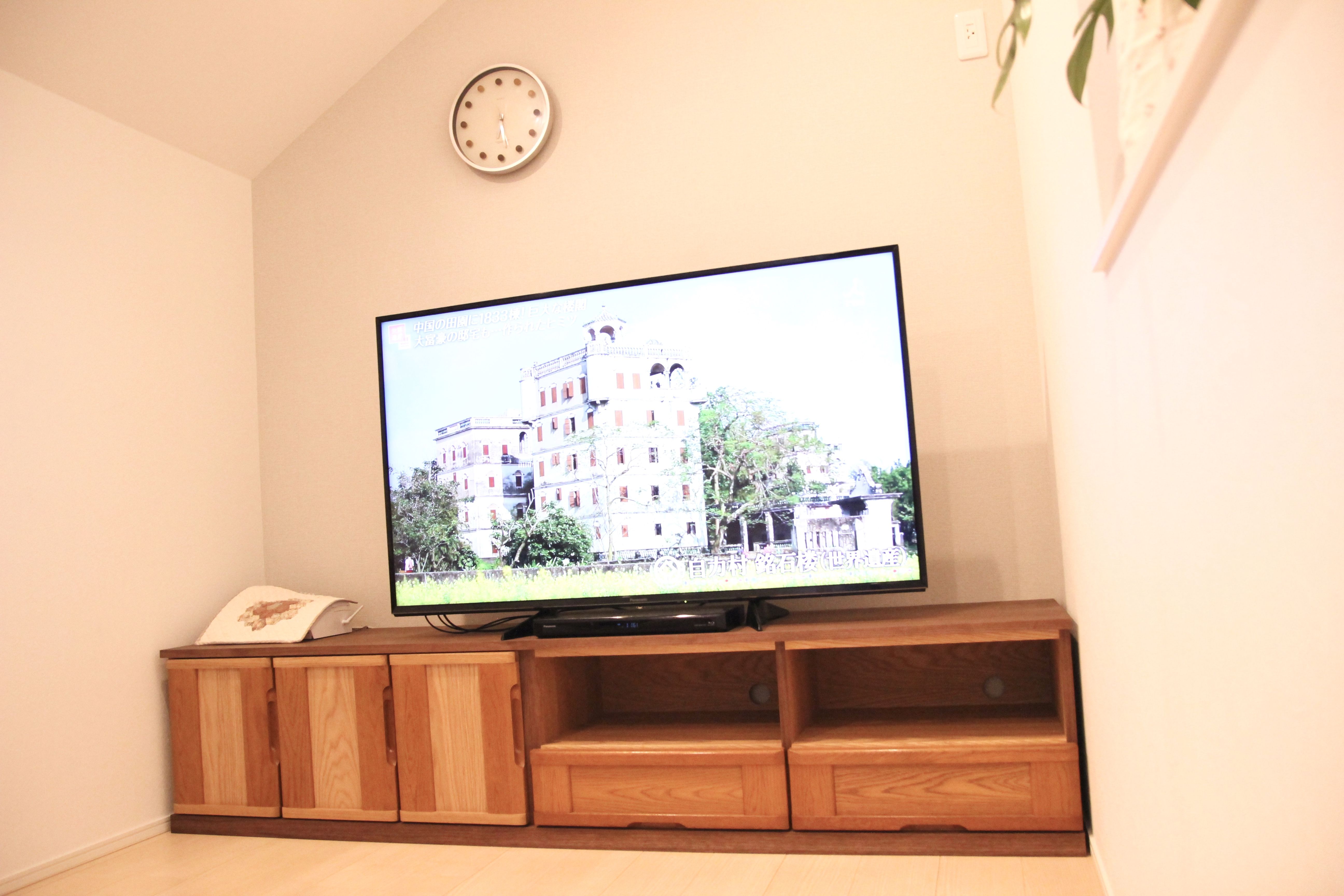 テレビ周りの配線って、どうしてもゴチャゴチャとしがちですよね・・・。扉の中に収めることでスッキリ綺麗に片付きます。