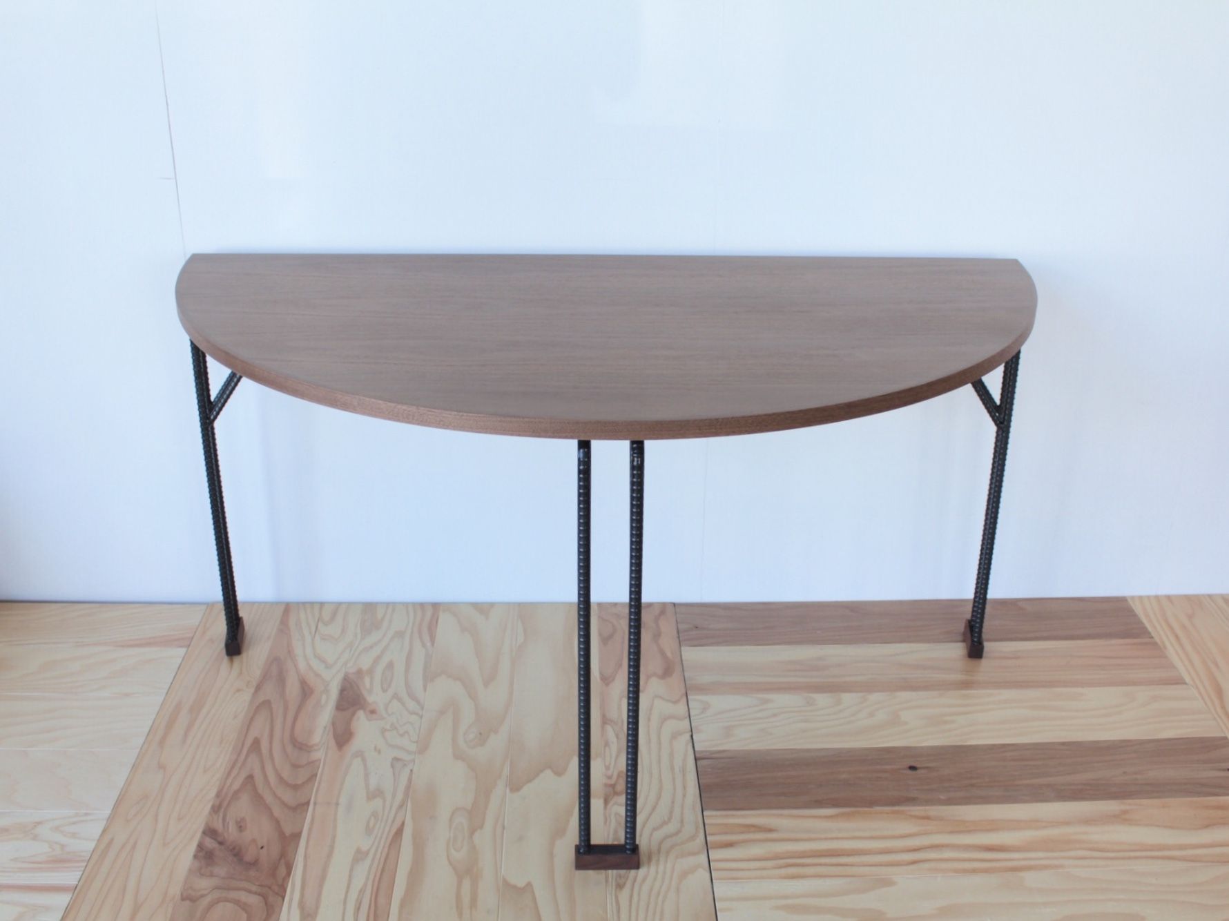 ウォルナット×アイアン脚の半円テーブル