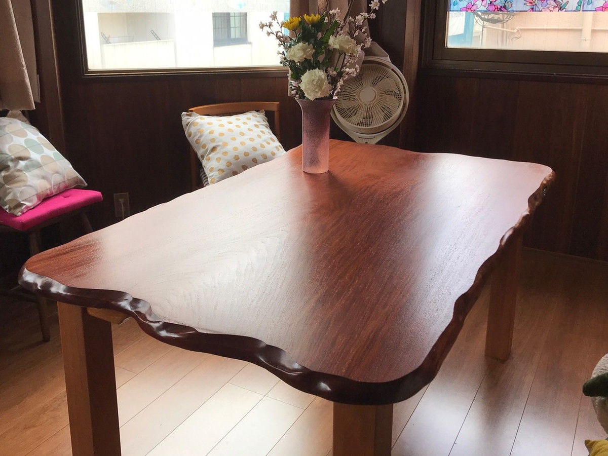 Blog:栃(トチ)の一枚板の座卓を食卓テーブルにリメイク☆で大ピンチ!?