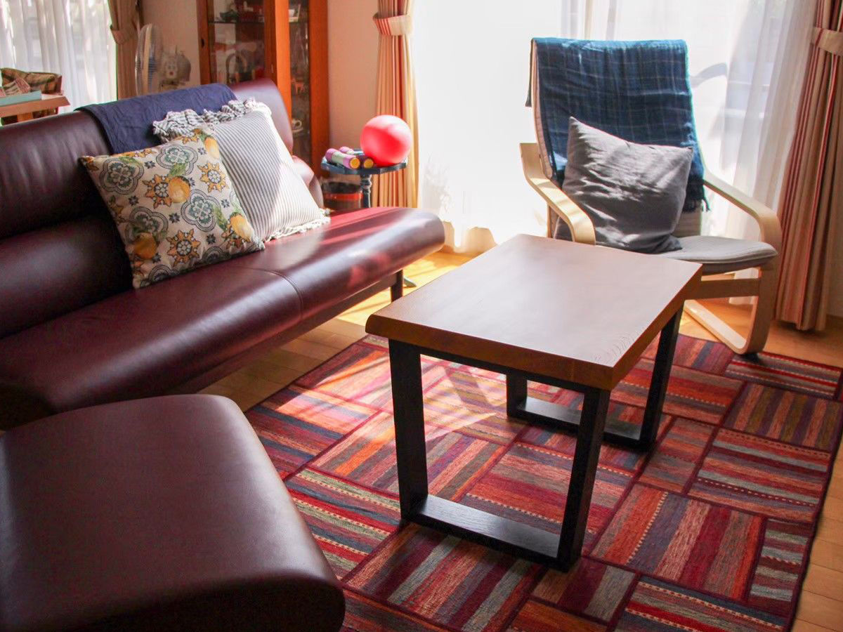 無垢一枚板の座卓を、リビングで使えるよう脚を継ぎ足してローテーブルにリメイクしました。